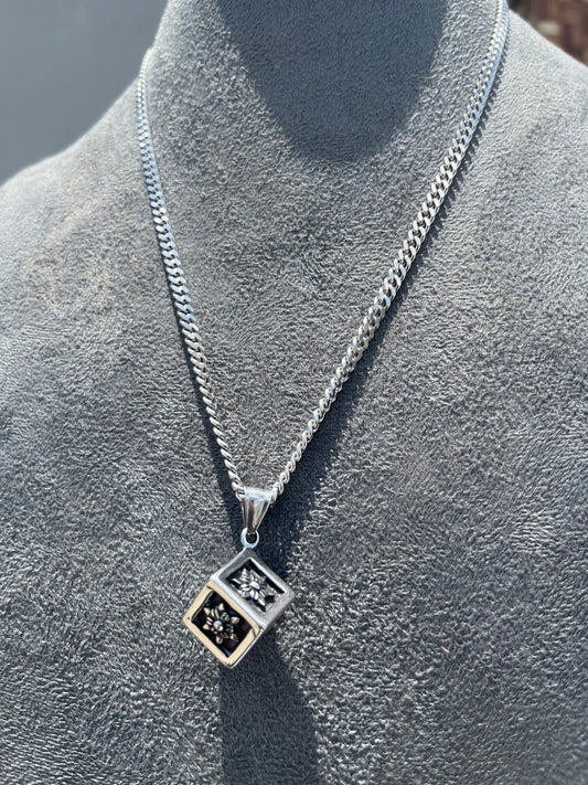 Cubic pendant stainless steel necklace