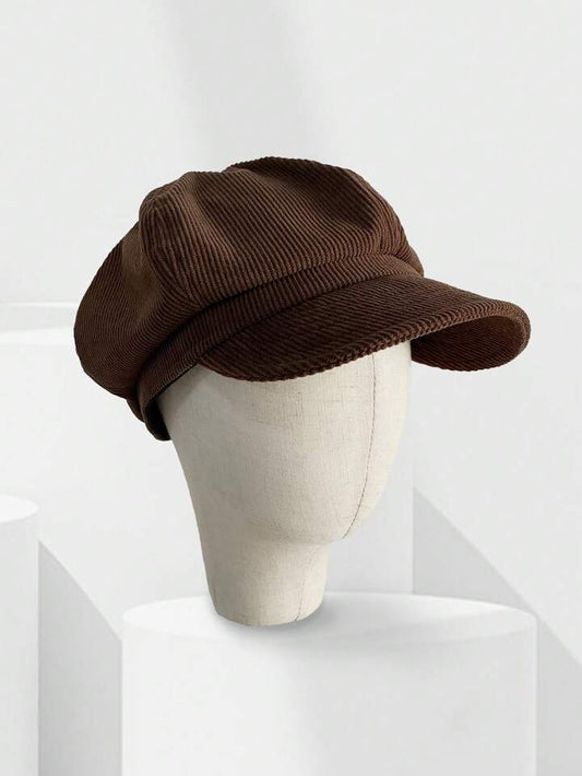 Corduroy newsboy hat in brown Size: Large