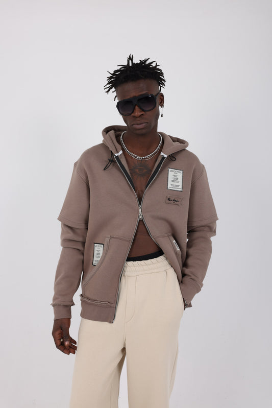 Mechanic double sleeve rise again collection hoodie in brown