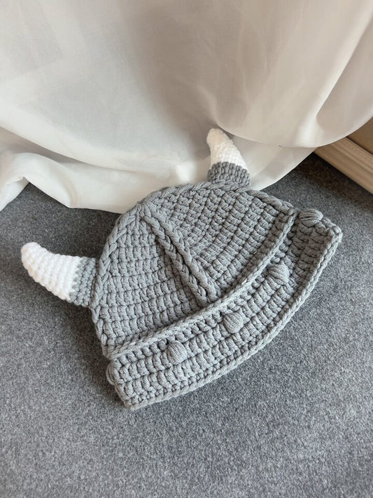Y2K viking horn crotchet beanie in grey