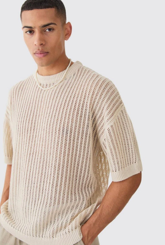 Boohoo oversized drop shoulder open stitch t-shirt stone