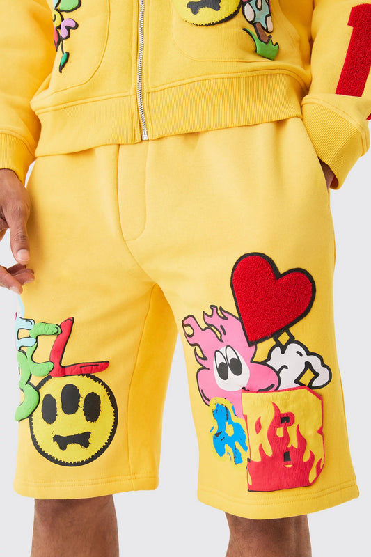 Boohoo puff print loose short in yellow