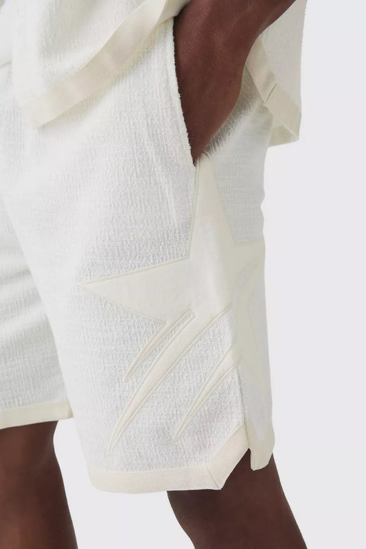 Boohoo LOOSE FIT TEXTURED STAR EMBROIDERED BASKETBALL SHORT in off white