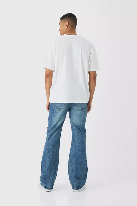 Boohoo slim rigid flare jean vintage blue