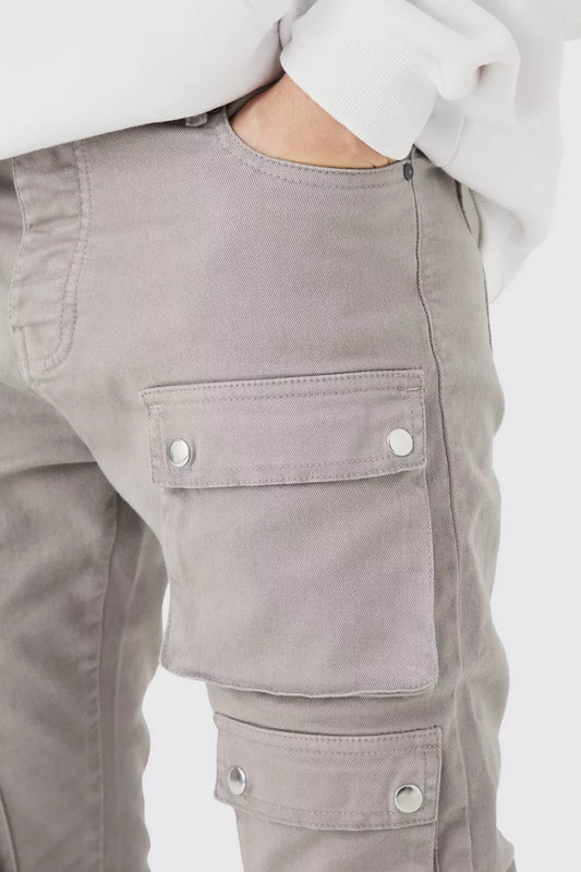Boohoo FIXED WAIST SKINNY MULTI CARGO POCKET TROUSER