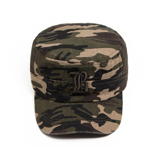 Flat top embroidered camo hat