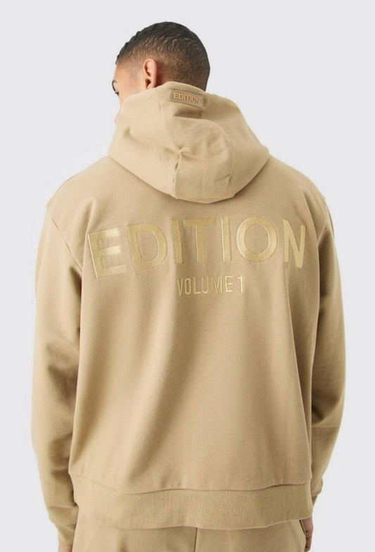 Boohoo edition oversized boxy heavyweight zip through in taupe